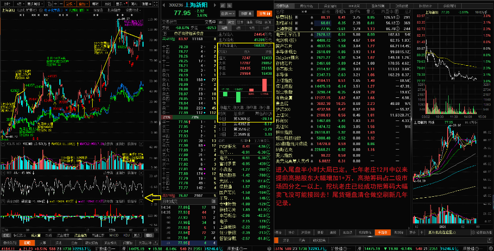 $中芯概念(BK0935)$$光刻机(胶)(BK0884)$$国产芯片(BK0891)$ 第二小时芯片半导体大幅低开后单边向上收割短线客,七年逆天老庄股新阳分时超级缩量百手单压盘还能扛多久? 元月中旬前一个多月提前高抛增加一万多股东的筹码再接回去起码要增加成本二十个点,已经出局A杀没希望鸟!