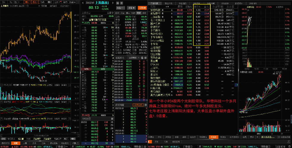 $中芯概念(BK0935)$$光刻机(胶)(BK0884)$$国产芯片(BK0891)$ 第一个半小时A股两个光刻胶带队,华懋科技一个多月跑赢上海新阳50+cm,绝对一年多光刻胶龙头。 七年老庄股上海新阳太缩量,大单压盘小单刷外盘外盘1.5倍量。