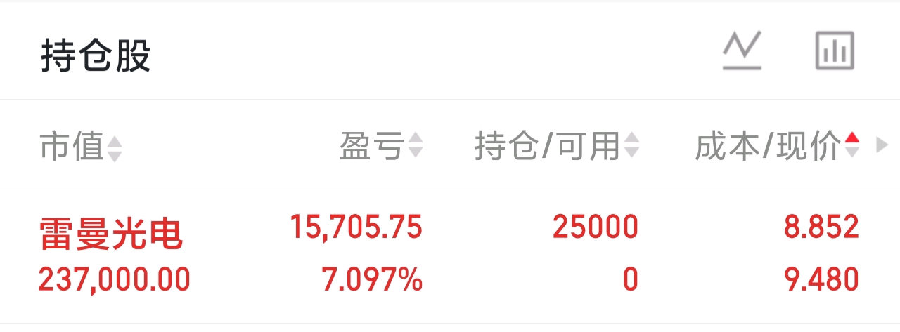今日开盘买入雷曼光电,主要是MicroLED+CPO算力节能新风口引爆板块。公司有COB封装、玻璃基技术优势,海外订单增长,早盘板块集体爆发、资金抢筹,首板放量封单稳,板块情绪高涨,短线溢价预期强。 开盘价8.96元下拉再反冲,确定趋势直接买入,快进快出为主。 明作思路: 若高开高走、封单稳,持有;若开板震荡、量能萎缩、板块走弱,冲高止盈;若低开跌破8.5元止损。短线不恋战,严格执行纪律,跟随...