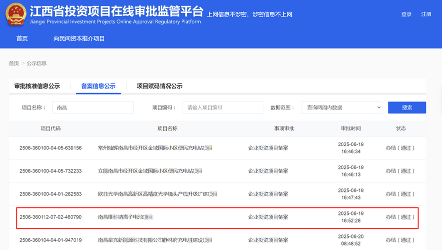 6月19日,江西省投资项目在线审批监督平台显示,维科技术南昌钠离子电池项目备案通过。据悉,该项目总投资42854万元,建设地点位于江西省南昌市新建区经开区。项目建设内容包括厂房装修及设备购买,主要配置正极/负极激光模切机、叠片机、自动化组装线、智能干燥线等核心生产设备,建设聚阴离子全自动产线,形成3GWh的大容量钠离子储能电池产能。项目主要产品:200Ah及以上容量的钠离子电池,建成后可以达到年产...
