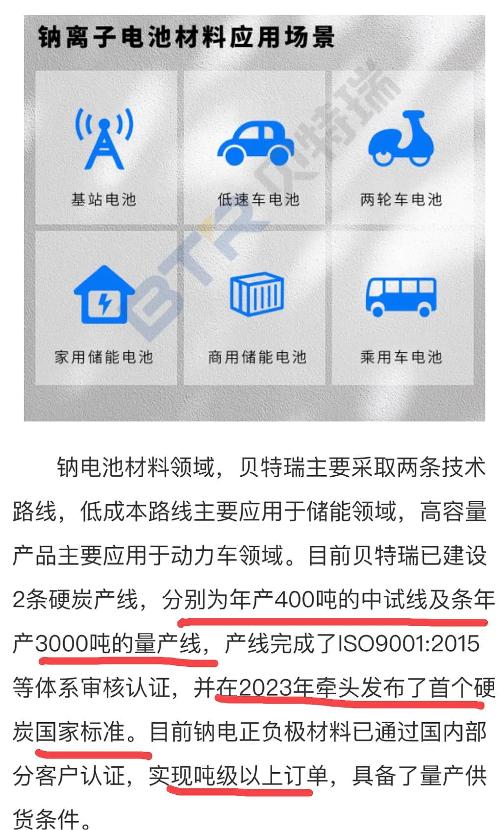 $贝特瑞(SZ835185)$钠电池负极材料之王,产能3400吨已实现量产,发布首个硬碳国标!$钠离子电池(BK0988)$