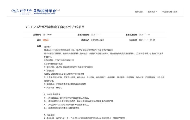 $江特电机(SZ002176)$#工业母机板块迎利好#$工业母机(BK1004)$$电机(BK1030)$ YEJ112-6级系列电机是工业自动化领域的“关键执行部件”,而为其投资自动化生产线,则表明江特电机正在深耕这一细分市场,力图通过规模化、标准化、高品质的生产,巩固和扩大其在中小功率制动电机领域的市场地位。 对本次招标项目的反向洞察 理解了应用场景,我...