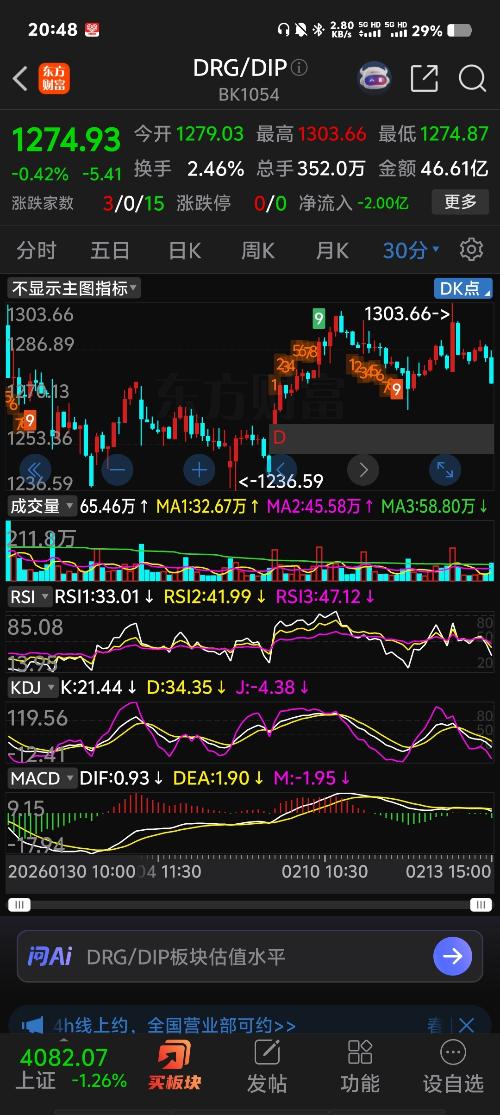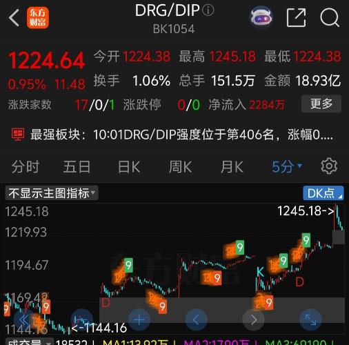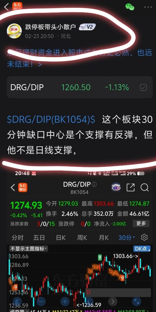 $DRG/DIP(BK1054)$这个板块30分钟缺口中心是个支撑有反弹,但他不是日线支撑,