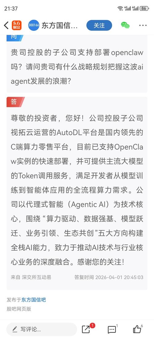 $东方国信(SZ300166)$$东数西算(BK1064)$$算力概念(BK1134)$ 根据天眼查App显示,2026年4月2日,东方国信(300166)旗下的全资子公司“内蒙古东方国信科技有限公司”完成了工商变更,注册资本由5亿人民币增至10亿人民币,增幅达到100%。 结合当前的市场环境(2026年4月)和公司基本面,这个动作释放了以下几个积极信号: 1.算力业务进入“兑现期”,业绩拐点已至...