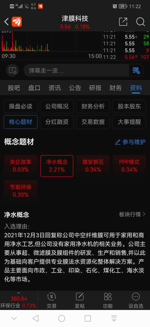 $狮头股份(SH600539)$$净水概念(BK1068)$津膜科技强势反弹