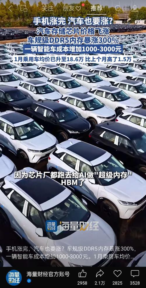 近期存储涨价的一些消息: 三星、SK海力士同步通知客户,DDR5颗粒二季度再涨约40%。两大厂明确预告,2026年二季度DRAM合约价有望翻倍,中小客户甚至需接受2倍+涨幅以保供。 此前三星电子在iPhone17的LPDDR5X内存谈判中,以100%涨幅作为起始报价,原意最终达成约60%的涨幅,但苹果当场接受100%报价。 主流手机品牌3月起新品最低涨1000元,中高端旗舰2000–3000元;存...