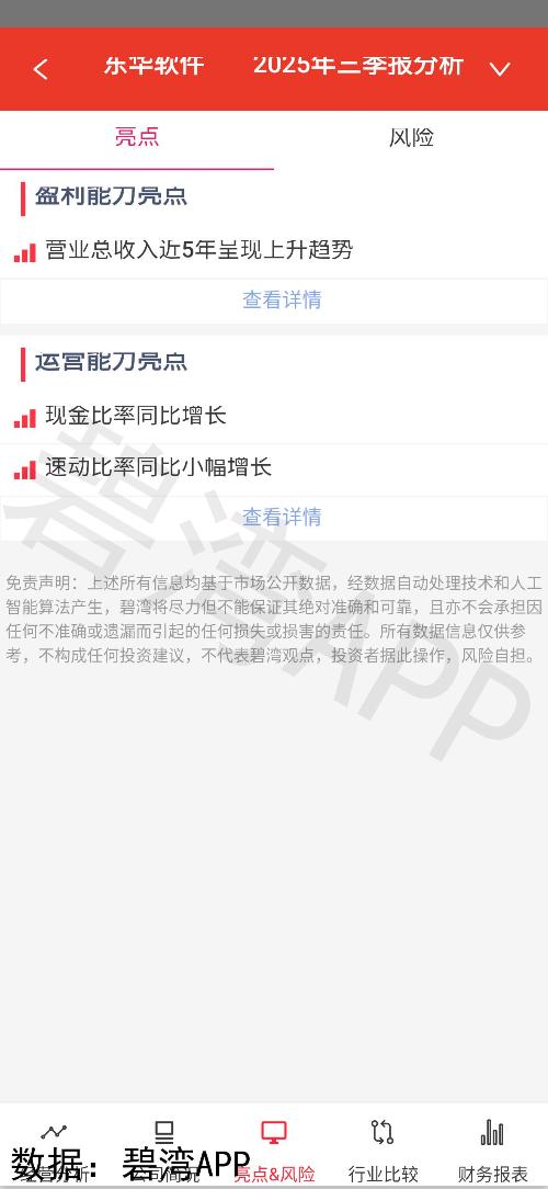 东华软件2025年一季度净利润扭亏为盈,主要受益于公允价值变动收益亏损收窄及经营活动现金流改善,但核心利润同比下滑74.85%,反映主营业务承压。扣非净利润大幅下降60.90%,凸显盈利质量弱化。尽管现金流管理优化推动净现金流增长,但筹资活动现金流由正转负,叠加营收小幅下滑,需警惕持续盈利能力和债务偿还压力。研发实力未在财务数据中直接体现,需结合团队背景与技术落地进展综合评估。