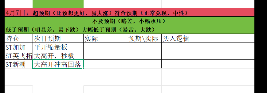 2026年4月7日ST板块复盘 一、持仓预期管理 二、板块情绪 大盘持续缩量,进入年报期,板块进入,下跌趋势