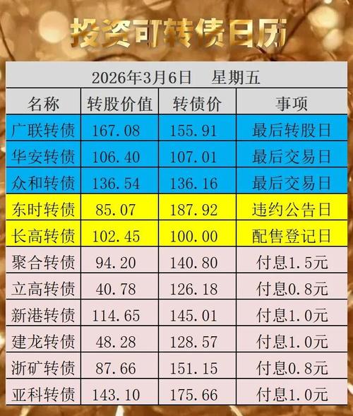 原文发送于昨日晚间自媒体。 6日为广联转债最后转股日,如果投资者忘记转股操作,将被100.96元赎回,亏损35%以上。 6日为华安转债、众和转债最后交易日,华安转债税后赎回价为105.6元,众和转债转股价值为136.54元,投资者可以根据自身风险承受能力选择。东时转债宣布违约,利空转债,详见赎回信息列表。 长高转债宣布发行,资金抢权,正股上涨2.7%,6日为配售登记日,还有抢权配售机会,但风险较大...
