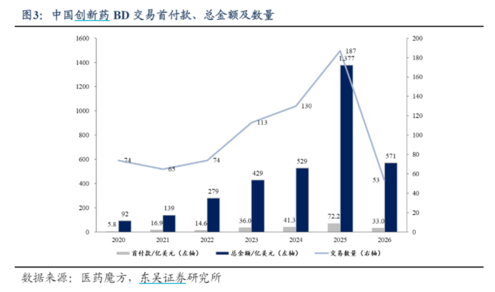今日(3.10),亚太股市开启反弹,港药大举反攻,国证港股通创新药指数(987018)盘中一度大涨超4%。(来源:choice,指数过往表现不预示未来,不代表基金表现)2026年开年以来,中国创新药对外授权交易持续火爆,成为市场关注焦点。截至3月6日,2026年中国创新药出海BD总包已达568亿美元,相当于2025年全年的41%,超过2024年全年水平。(来源:东吴证券《医药生物行业跟踪周报:两会...