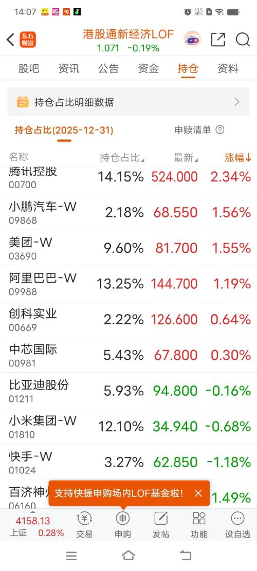 $港股通新经济LOF(SH501311)$看持仓今天应该红一个点才对,在作弊吧!
