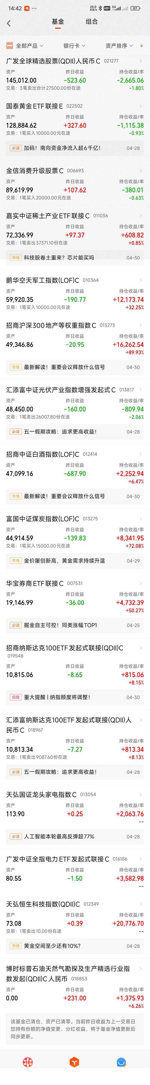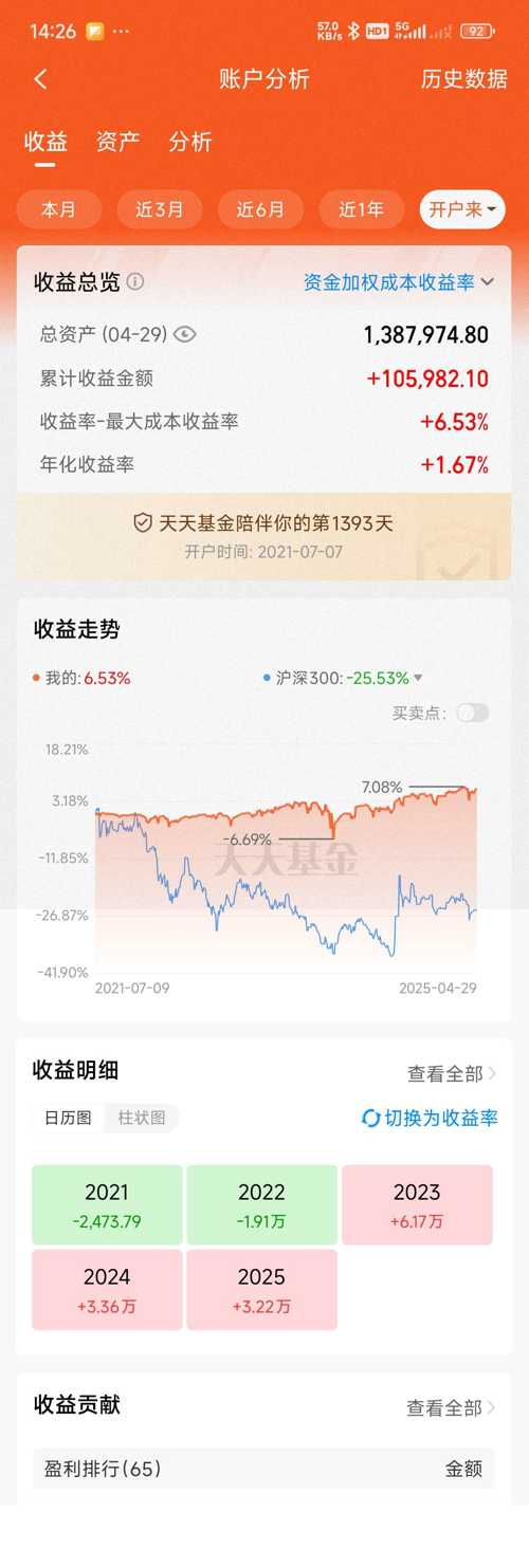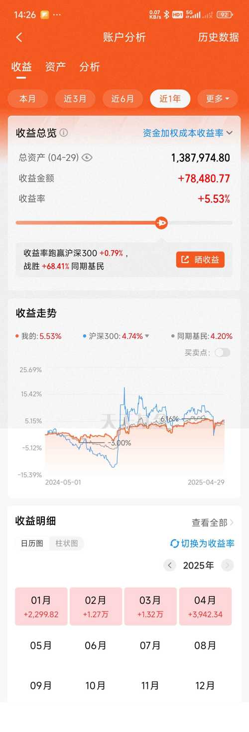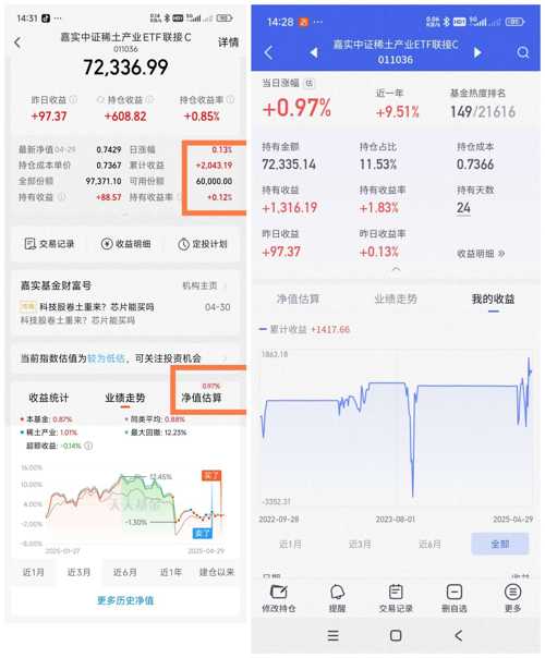 这个月收官了,先祝大家五一假期愉快! 今天盘中最高红2500多,截止发帖就剩1000多,而且还在跳水中! 今天结束年线三年红! 月线四连红! 下个月要求不高,能红就行! 今天操作! 今天持仓! 有加有减,控制总仓位! 稀土,被中国稀土和北方稀土拖住腿了,但是今天更新之后收益破新高了,止盈1/3仓位!节后还涨就清了! 金信消费,进场早了,又被揍,今天继续加仓! 黄金,昨天没加,今天加1万! 黑妹,昨...