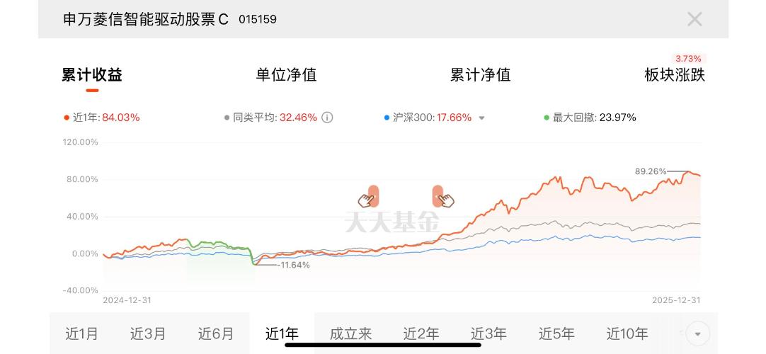 国产GPU性能提升,替代空间大,通信电子热度不减。申万菱信智能驱动顺着科技行情上涨,C类近1年84.03%,前十大重仓都是热点,今年以来涨势强劲,今天估值超3个点! $申万菱信智能驱动股票C$