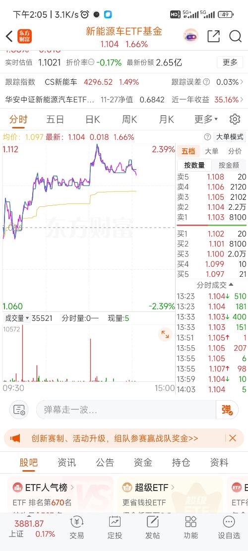 $新能源车ETF基金(SH516660)$怎么没有人买卖了?没人买,没人卖,庄家你就拉啊,大盘再高点。