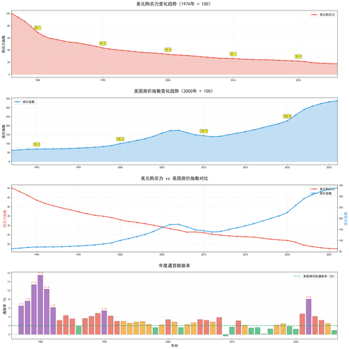 抓取一下美元的近几十年的购买力数据和美国房价指数,数据摆出来其实就很清楚,长期看任何国家货币购买力一定是缓慢下降的,就算最强货币美元也不例外,房子可能本身价值并没有太大变化,价格可能只是跟随货币购买力在浮动而已,货币购买力小周期的调整,不影响长期下降,你有500万这几年持有现金觉得赢了,但30年后,还值多少购买力真不好说,房产只要70年后免费续就不可能没有金融属性,因为他最起码能将你的资产安全的带...