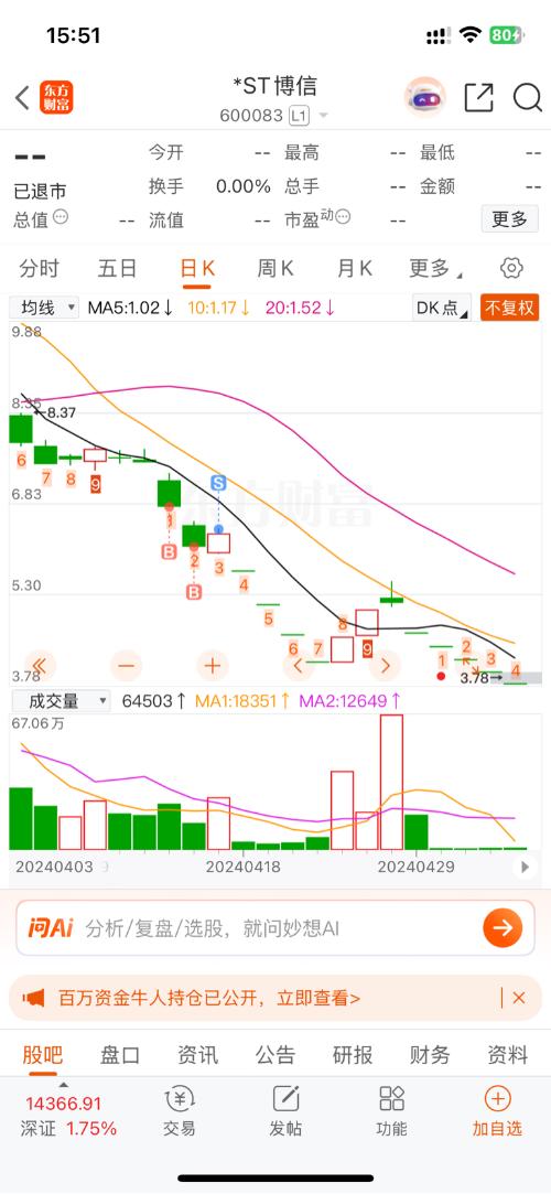 $*ST博信(SH600083)$20年st,3.4出来的,现在最终退市!万幸