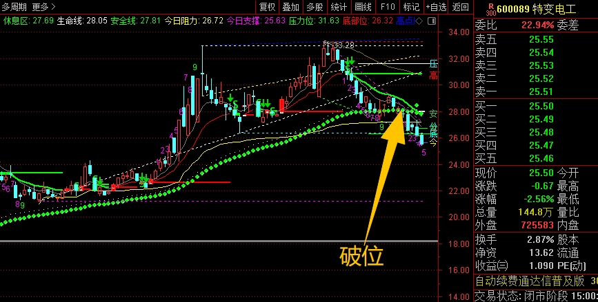 $特变电工(SH600089)$前期走势比较稳健,一直是震荡拉升的格局,没有过分的回落动作;但近期高位回落下来,跌破了安全线28.06附近的支撑,并且反拉起来后没能站稳,再次跌破,这种状态下就需要严格控制仓位应对了,防着后续连续下杀回落的调整动作,目前来看整体形态是继续回落探底的走势,需要谨慎应对,不要乱抄底,管住手。