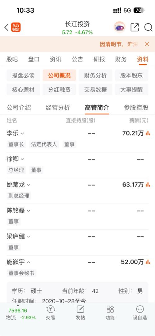 $长江投资(SH600119)$涨了两天,明天该回到5.7了吧