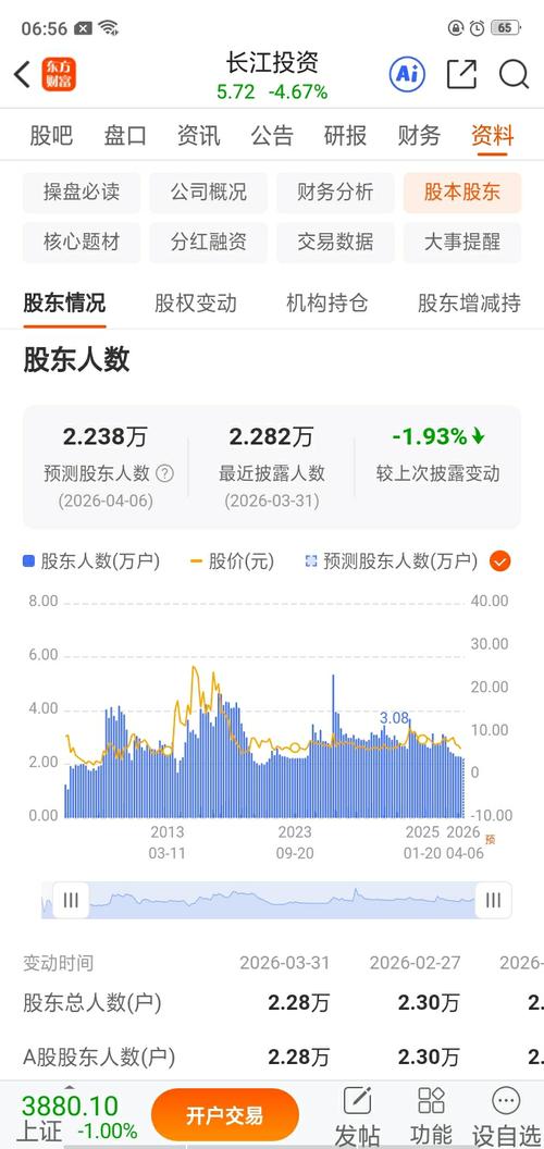 资讯 长江投资:截至2026年3月31日股份持有人数为22817户