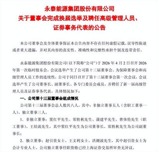 4月2日,山西A股上市公司永泰能源(600157.SH)发布重磅公告,公司第十三届董事会完成换届,窦红平被聘任为公司新任董事长。 同日,公司宣布将采用“股权 债权”结合的融资模式,为核心项目海则滩煤矿募集不超过20亿元资金。 永泰能源成立于1992年,是山西最大的民营煤炭企业之一,业务涵盖电力、煤炭、石化、储能等领域。 截至2025年三季度末,永泰能源总资产达1083.32亿元。...