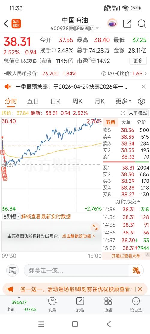 $中国海油(SH600938)$这股上41肯定没问题,我开盘高开直接入了