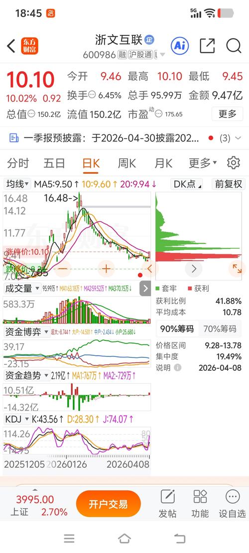 晚间话浙文互联:今日回顾与明日展望 今日回顾 早盘9.46元开,最高冲至10.10元,最低下探9.45元,最终收盘10.10元,上涨10.02%,单日振幅7.08%,股价全天运行区间集中在9.45-10.10元。全天成交量95.99万手,成交额9.47亿,换手率6.45%,量比1.61,资金活跃度较前一交易日有所提升;委比100.00%,买盘力量稍占优势,内盘成交40.35万手,外盘成交55.64...