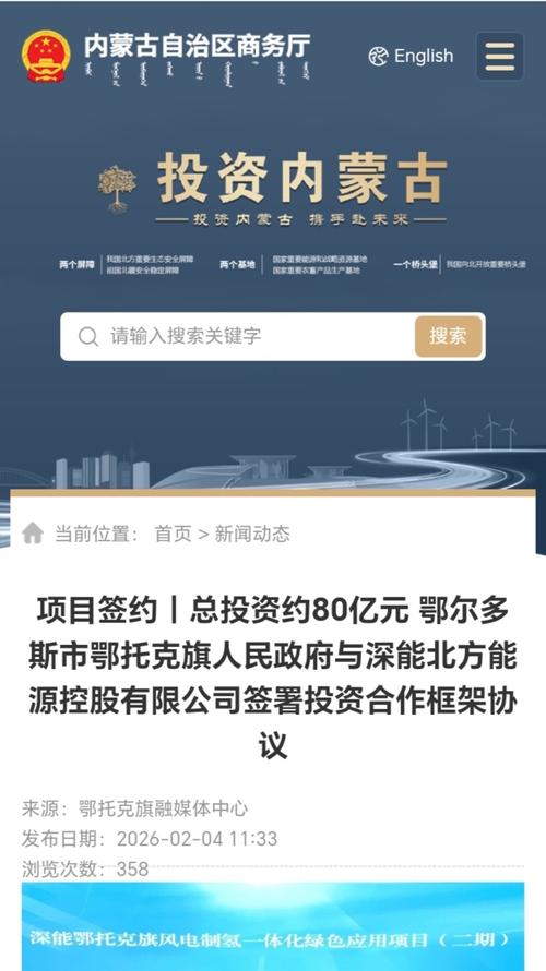 总投资约80亿元 内蒙古鄂尔多斯市鄂托克旗人民政府与深能北方能源控股有限公司签署投资合作框架协议。2026年8月全面建成投产。