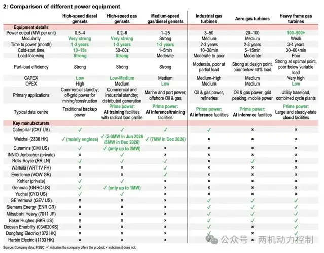 两机动力控制2026年4月9日22:53湖南 导读:AI数据中心对电力设备的需求正在重塑整个发电设备市场格局。汇丰银行最新研究报告指出,天然气发电机组正迅速取代燃气轮机,成为AI数据中心首选的过渡性主电源,供需失衡局面短期内难以缓解。 据追风交易台,汇丰近日发布报告,由于AI驱动的需求激增,头部天然气发电机组制造商订单已排至2027年底,2025年设备价格已上涨15%至20%。预计供应紧张态势将延...