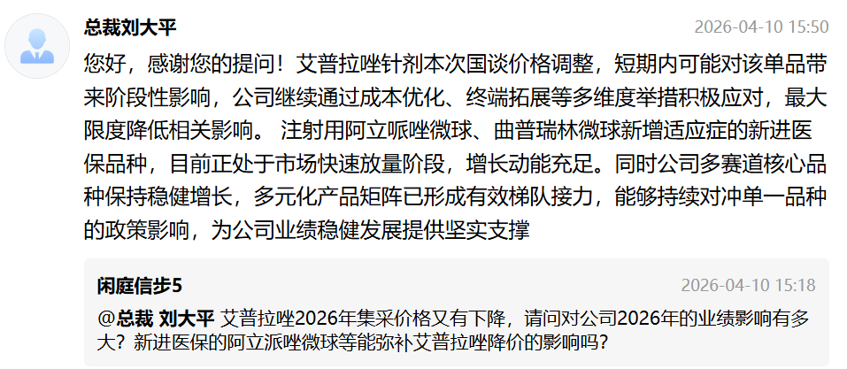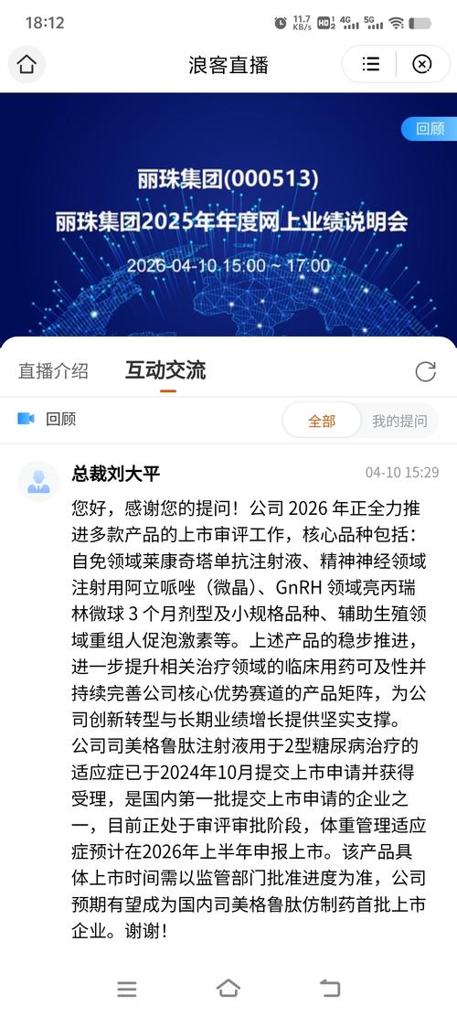 有关丽珠集团2026年创新药获批上市及收购越南公司的提问,刘大平总裁和财务负责人王胜均做回答,感谢!丽珠集团继续腾飞可期!