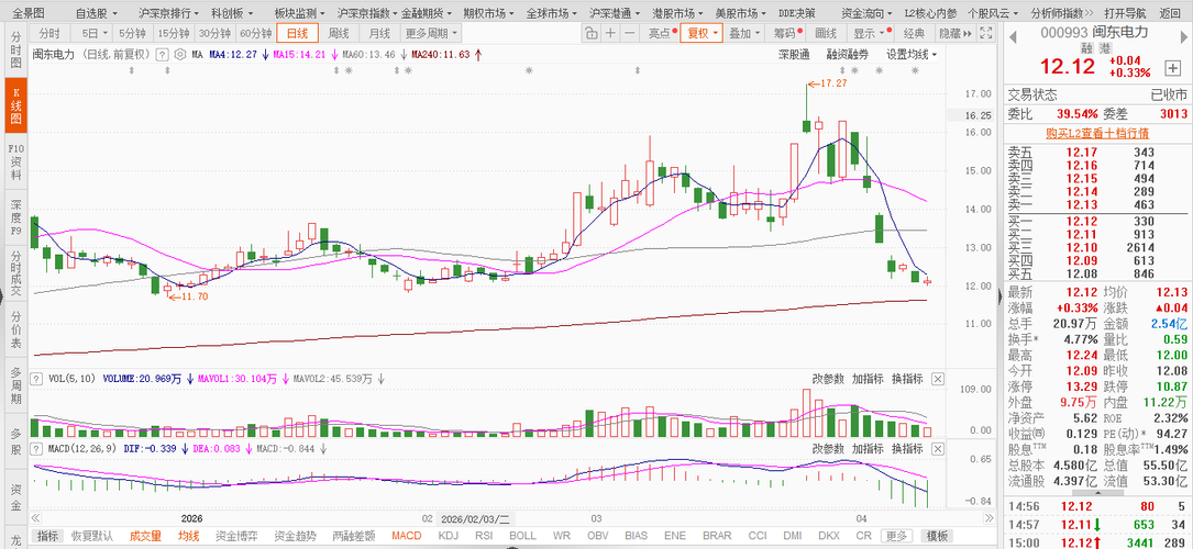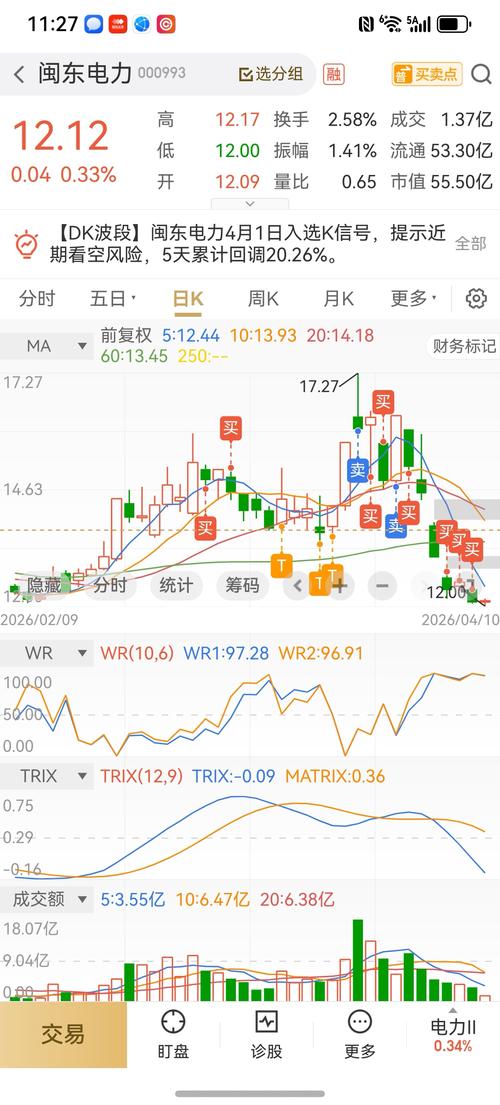 $闽东电力(SZ000993)$2026.3.26-17.27元,2026.4.10-12.12元,10个工作日回调30%!!!17.27对应对子顶,12.12对应什么?大涨不奢求企稳就行