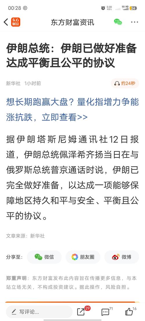 $中工国际(SZ002051)$ 伊朗总统佩泽希齐,伊朗已完全做好准备,以达成一项能够保障地区持久和平与安全、平衡且公平的协议