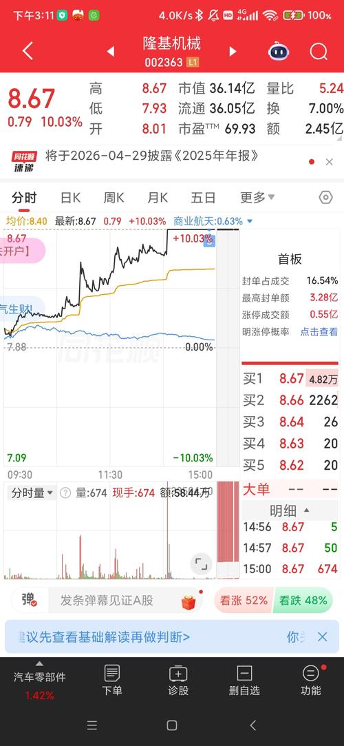 $隆基机械(SZ002363)$明天接着涨停,微盘股轻松连板