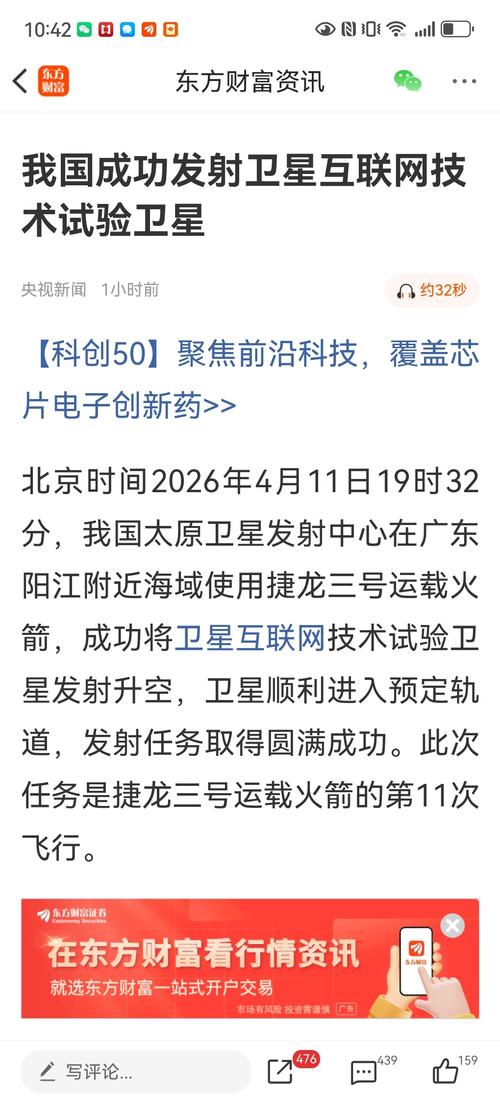 $雷科防务(SZ002413)$ 北京时间2026年4月11日19时32分,我国太原卫星发射中心在广东阳江附近海域使用捷龙三号运载火箭,成功将卫星互联网技术试验卫星发射升空,卫星顺利进入预定轨道,发射任务取得圆满成功。此次任务是捷龙三号运载火箭的第11次飞行。