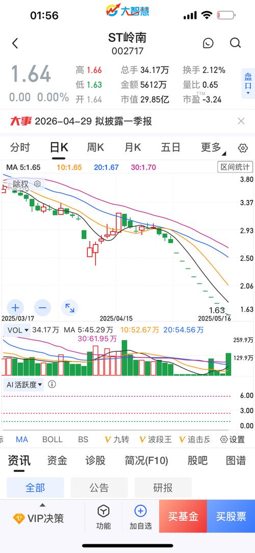 去年岭南被st,10个跌停板,中间1.9有放量,后面又4个跌停,管住手,年报前不能买