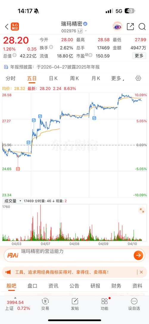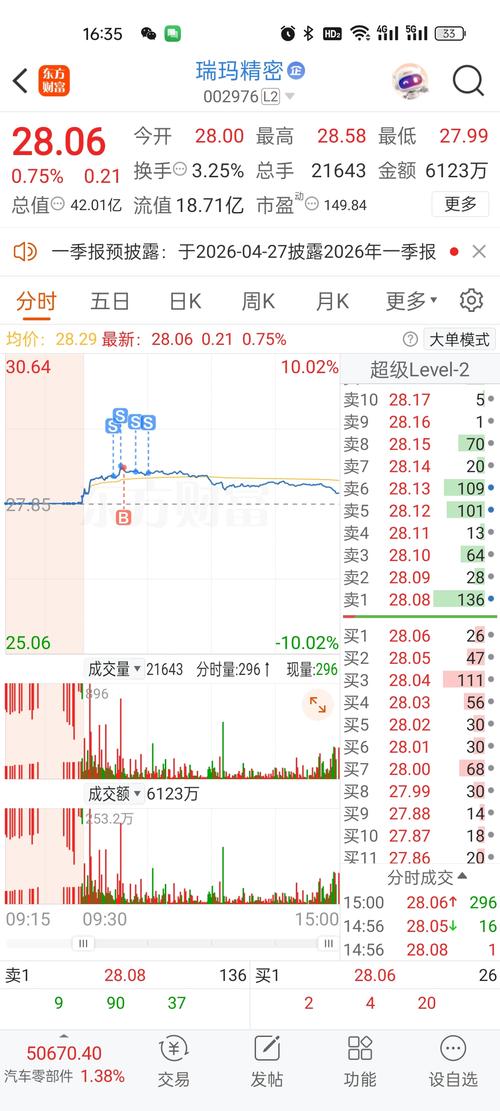 $瑞玛精密(SZ002976)$28块钱已经买入200万,等着主力拉升吃肉