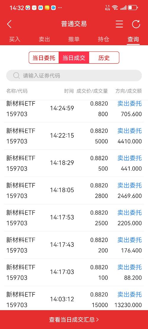 $新材料ETF(SZ159703)$出3万份,居然分九笔卖完。除了第一笔15000份外 都是几百份的散户在接盘。