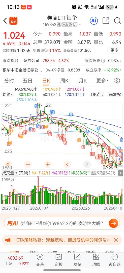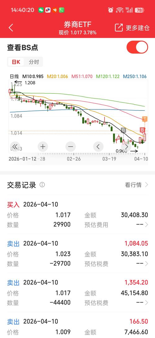 $券商ETF银华(SZ159842)$$证券公司(SZ399975)$预测159842ETF趋势,分析4个阶段:(点位预测和交易预测是4月13日。不要跟风投资,只供参考) 顶部:1.167↓ 卖出:1.131 买入:1.005 底部:0.978 2026.4.10行情159842ETF收盘价1.010 预测买卖点: 下列条件之一成立,卖出 1.收盘价小于等于0.962 买入信号交易日:1 买入信号...