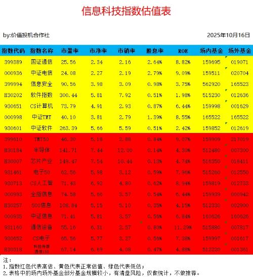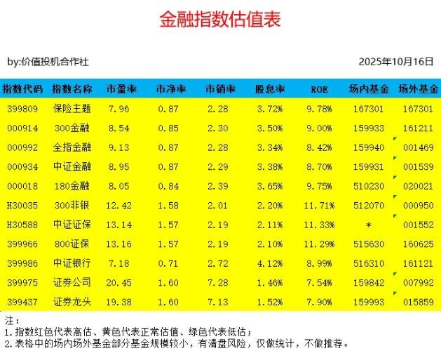 金融指数和信息科技指数估值表更新