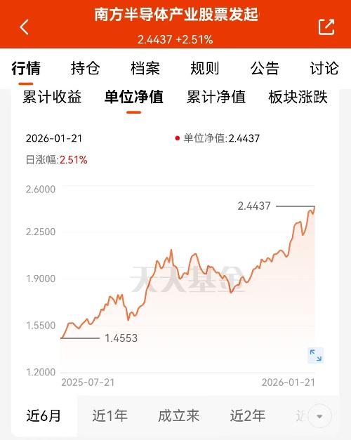 今天继续买入$南方半导体产业股票发起C$(020554),基金净值今天再创新高,表现持续强劲。近半年收益68%,近一年收益87%,在同类产品中名列前茅。市场主线明确指向半导体产业链,光刻机相关领域和本土化替代环节备受关注。行业周期好转与本土化加速形成双重利好。大盘趋势向好,结构性行情中抓住主线尤为重要。半导体行业未来增长潜力巨大,现在参与时机仍然合适。#摩根资产:A股机会将大于风险#