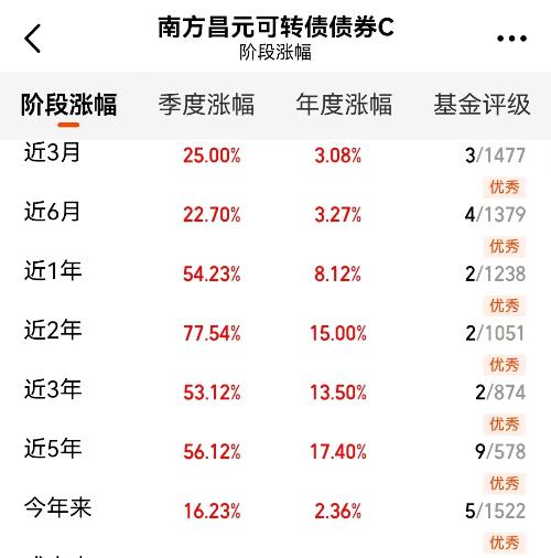 行情回暖,想赚点钱又不想太折腾的,$南方昌元可转债债券A$(006030)是个不错的选择。这基近半年涨了36%,2025年涨了48%,在1000多只债基里拿了冠军。它主要靠科技类的可转债来增强收益,涨起来不含糊。但话说回来,可转债这东西涨跌幅度不小,买之前一定要想清楚,别光看收益忘了风险。#稀土小金属走强战略资源价值重估持续?#