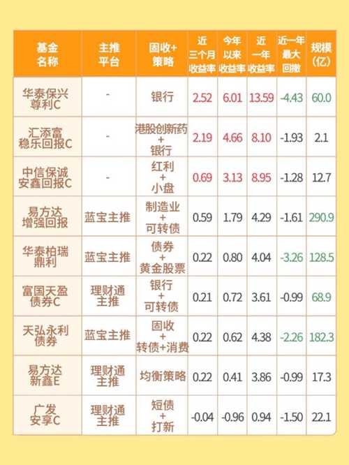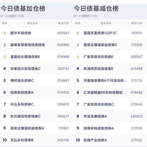 在当前债市环境下,本基金凭借60天滚动持有期的独特设计,既保证了一定的资金流动性,又为基金经理提供了稳定的运作周期。基金经理可以充分发挥专业优势,根据债市行情灵活调整投资组合,在风险可控的前提下,致力于实现资产的保值增值。 $申万宏源灵通快利短债债券$$汇添富中债7-10年国开债E$$农银汇理金汇债券A$