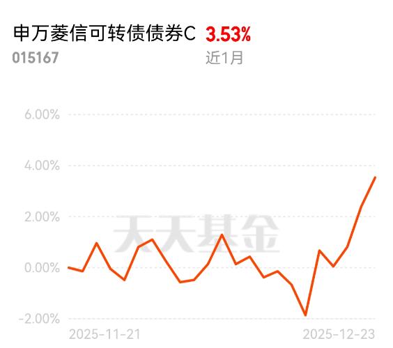 美联储降息周期重启,宽松环境利好债券,申万菱信可转债C近1个月3.53%。股债搭配的组合太实用,既有稳定利息收入,又有权益资产抓上涨机会,近1周同类第二,近一年收益远超同类平均。 $申万菱信可转债债券C$