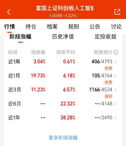 行情火热抓紧上车,富国上证科创板人工智能C今日估值涨1.80%,近一月19.73%,卡位AI赛道,吃肉机会别错过
