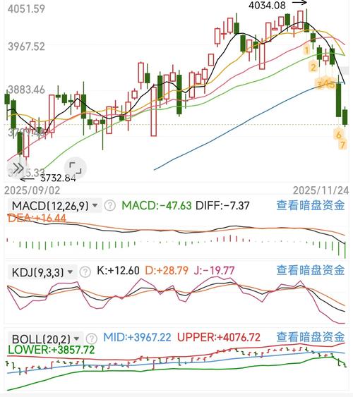 【行情分析解读】2025.11.24 市场早盘集体调整,个股涨多跌少,全市场超3200只个股上涨,半日成交额1.03万亿,较上个交易日缩量2849亿。 之前的上涨结构已经被破坏了,现在整体处于一个下跌的通道里,而且跌得还挺急,照这个势头,周初可能还会再往下探一探,不过中期来看,3700点附近应该是一个比较关键的位置,就看市场能不能调到那里了。 短期来说,如果再急跌一波,说不定会有一个技术反,但这种...