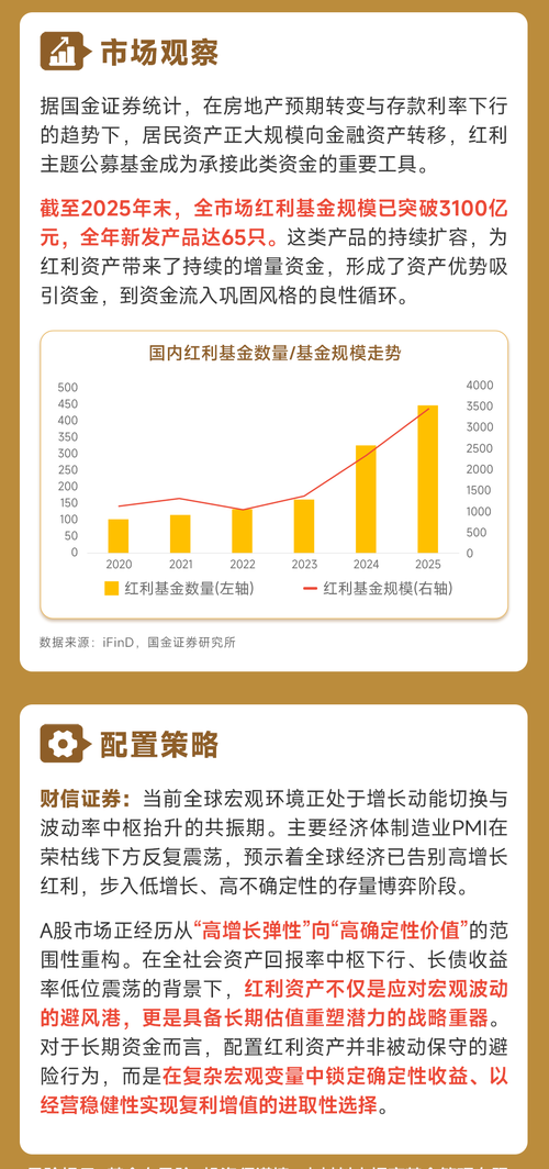 A股市场正经历从“高增长弹性”向“高确定性价值”的范围性重构。在全社会资产回报率中枢下行、长债收益率低位震荡的背景下,红利资产不仅是应对宏观波动的避风港,更是具备长期估值重塑潜力的战略重器。对于长期资金而言,配置红利资产并非被动保守的避险行为,而是在复杂宏观变量中锁定确定性收益、以经营稳健性实现复利增值的进取性选择 $招商中证全指红利质量ETF发起式联接A(OTCFUND|026671)$ $招商中证煤炭等权指数(LOF)A(OTCFUND|161724)$...