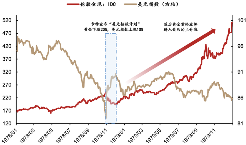 大家好,我是招商基金基金经理窦福成,深耕商品板块和高股息板块。黄金是否见顶?短期大跌是流动性调整的结果!核心逻辑在于:历史不会。“去美元化”的核心底层逻辑都没有改变。下跌不过是各国为了拯救本币价值的徒劳尝试。以土耳其为例,试图为了维持本币的价值,抛售黄金。历史上想要完成这个过程的国家很多,包括1978年的美国(如下图)。但最后的结果都只是延缓本币下跌的趋势,而黄金的调整大概率只是暂时的...