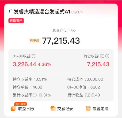 说实话,像脑机接口,航空航天这种领域,突然大涨,个人很难研究透。广发睿杰我买了今天继续大涨4.36%,近一年涨了67%+,这个基金经理能提前挖掘并纳入组合,说明他们的研究能力挺强的,加了个自选,准备买点试试$广发睿杰精选混合发起式A1$