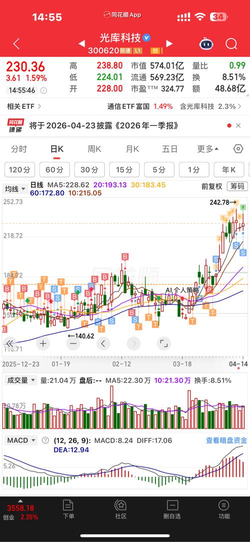简单聊聊股票 光库科技$光库科技(SZ300620)$ 今天我重点盯着214这个关键的回调支撑位。前面几次回调,到了这个位置附近都撑住了,算是短期的一个底。至于13日均线,今天要想跌到那里可能性不大,毕竟均线还在往上走,距离现在股价还有一段空间,所以暂时不用太关注。 如果今天股价真能跌到214附近,并且出现缩量企稳的迹象,比如成交量缩得很小、K线收个十字星或者带下影线的小阳线,那就说明有人在这个位...