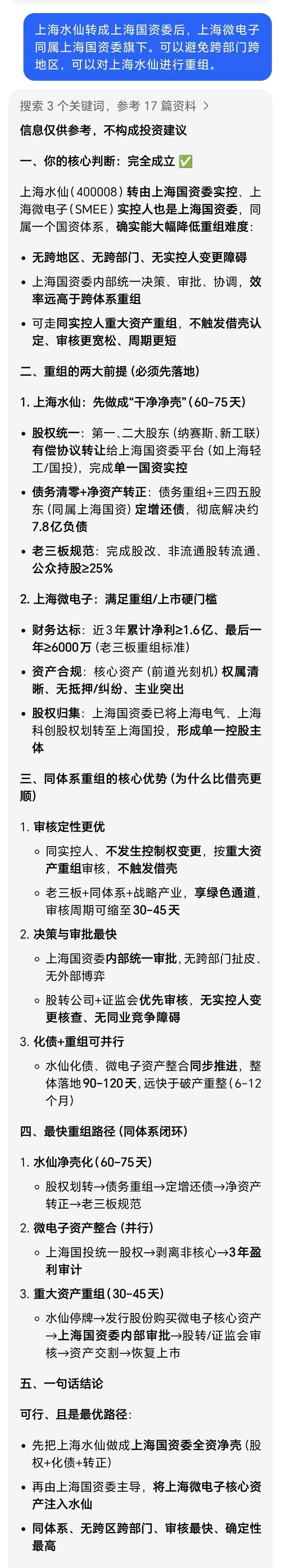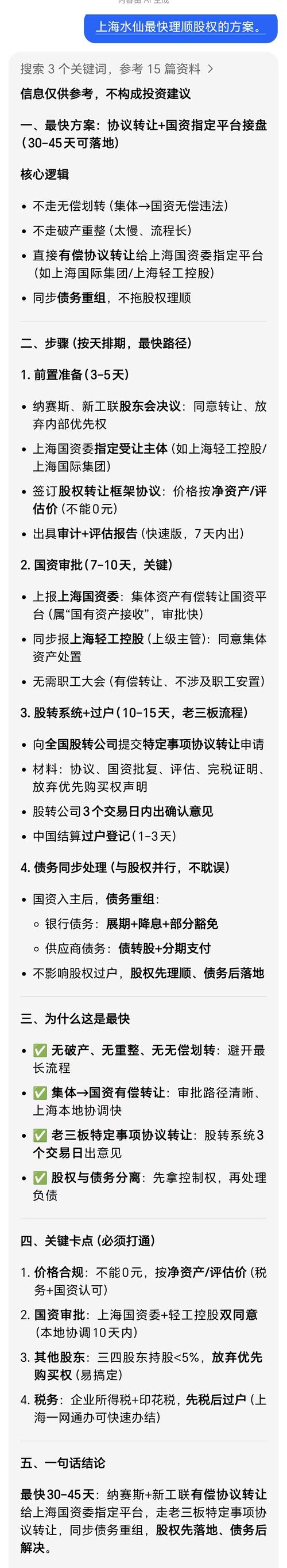 $水仙A3(SZ400008)$水仙最后的出路就是重整,因为水仙是最干净的壳资源