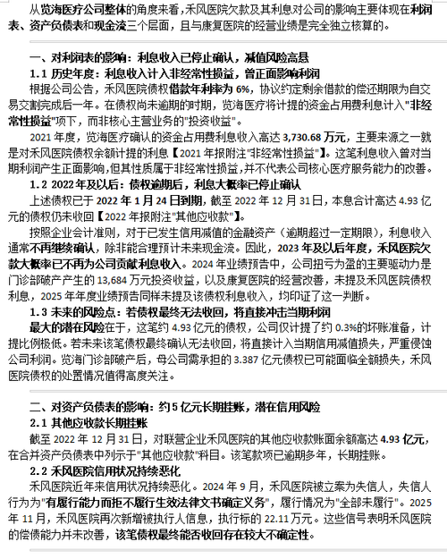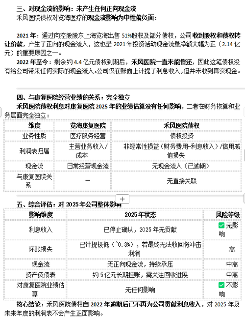 3412- 核心结论:禾风医院债权自2022年逾期后已不再为公司贡献利息收入,对2025年及未来年度的利润表不会产生影响。